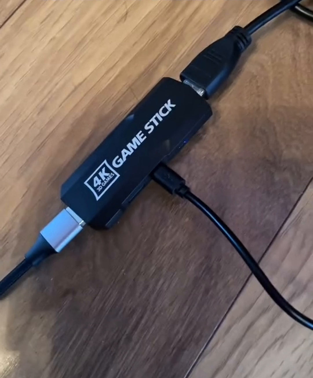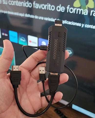- Insertá el stick HDMI en tu TV y enchufá el cable USB para alimentación.