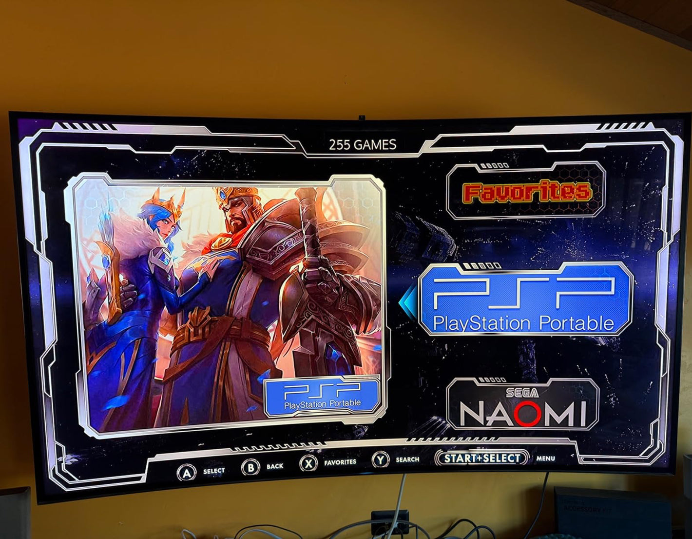 Incluye portátiles míticas como PSP, Game Boy, Game Gear, y también arcades como MAME y Final Burn Alpha.